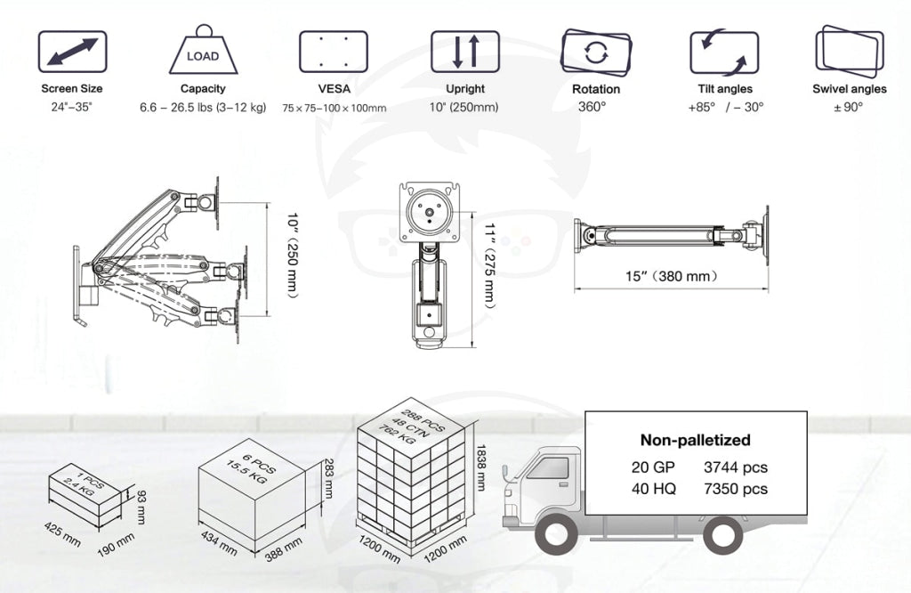 F425 is a wall mounted full motion LED, LCD TV or display mount. It is designed and built with ergonomic concepts to enhance your working and gaming experiences. Constructed in aluminium alloy and including a durable built-in gas spring cylinder, it provides easy tilt, swivel and height adjustment for maximum ergonomic comfort. Unique pivot joint design offers 180° swivel and effortless tilting positions to eliminate reduced viewing angles. Whether for entertainment, video conferencing, gaming or Zoom meetings, the F425 is able to provide simple and effortless screen positioning due to its versatile design. The product constructed in aluminum alloy and segments are joined with a specialied riveting process to produced a sturdy and stable universal display mount. F425 is designed in single-arm single extension and will fit most 27" - 45" TVs or displays. Cased in a smooth arc profile with a perfect powder-coated black surface finish, the product blends well with modern TVs or displays and includes ring and hood integrated cable management for a clean and clutter-free look.