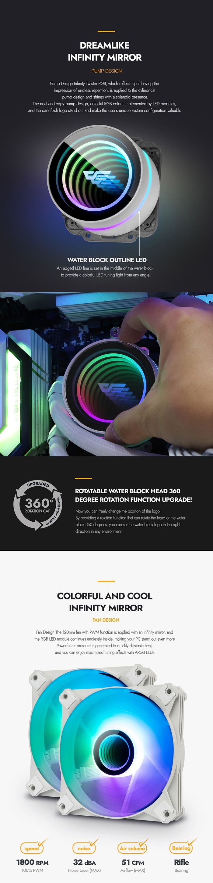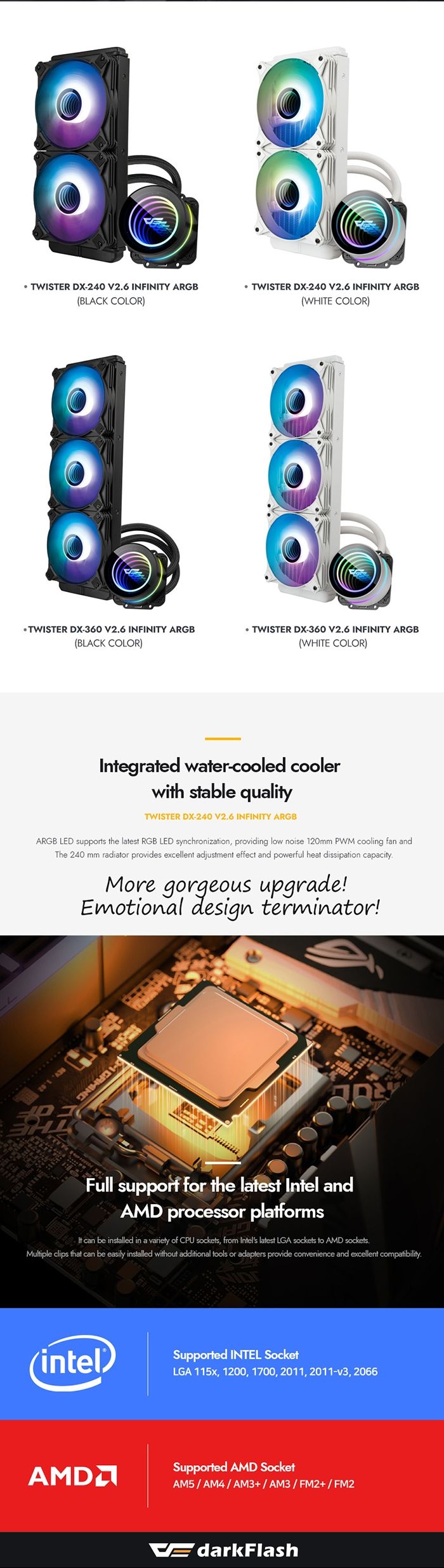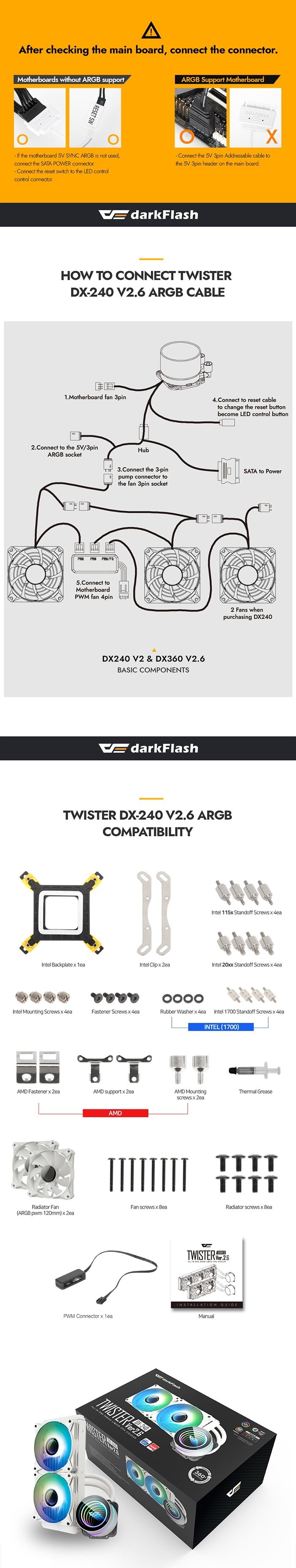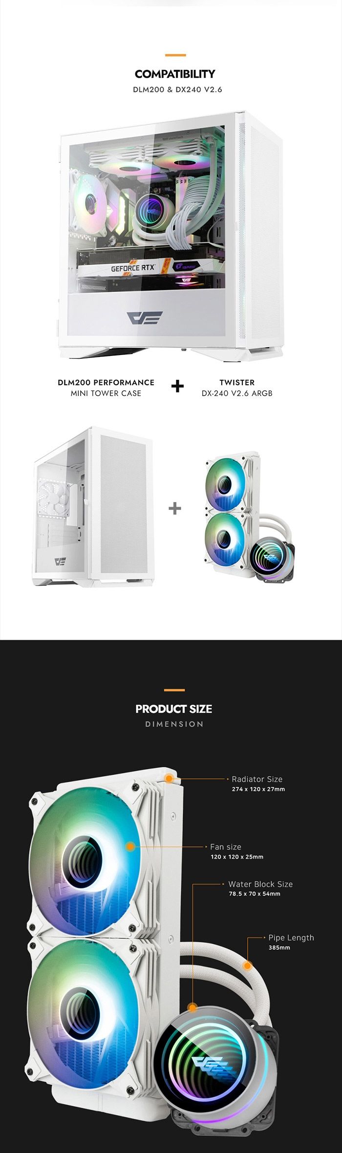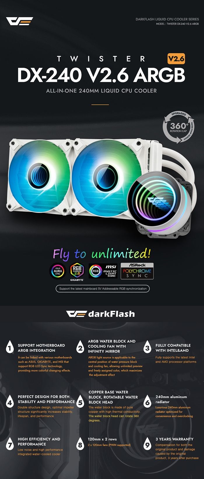 • Darkflash Twister DX240 V2 240mm AIO ARGB Liquid CPU Cooler - White Darkflash Twister DX240 V2 240mm AIO ARGB Liquid CPU Cooler - White