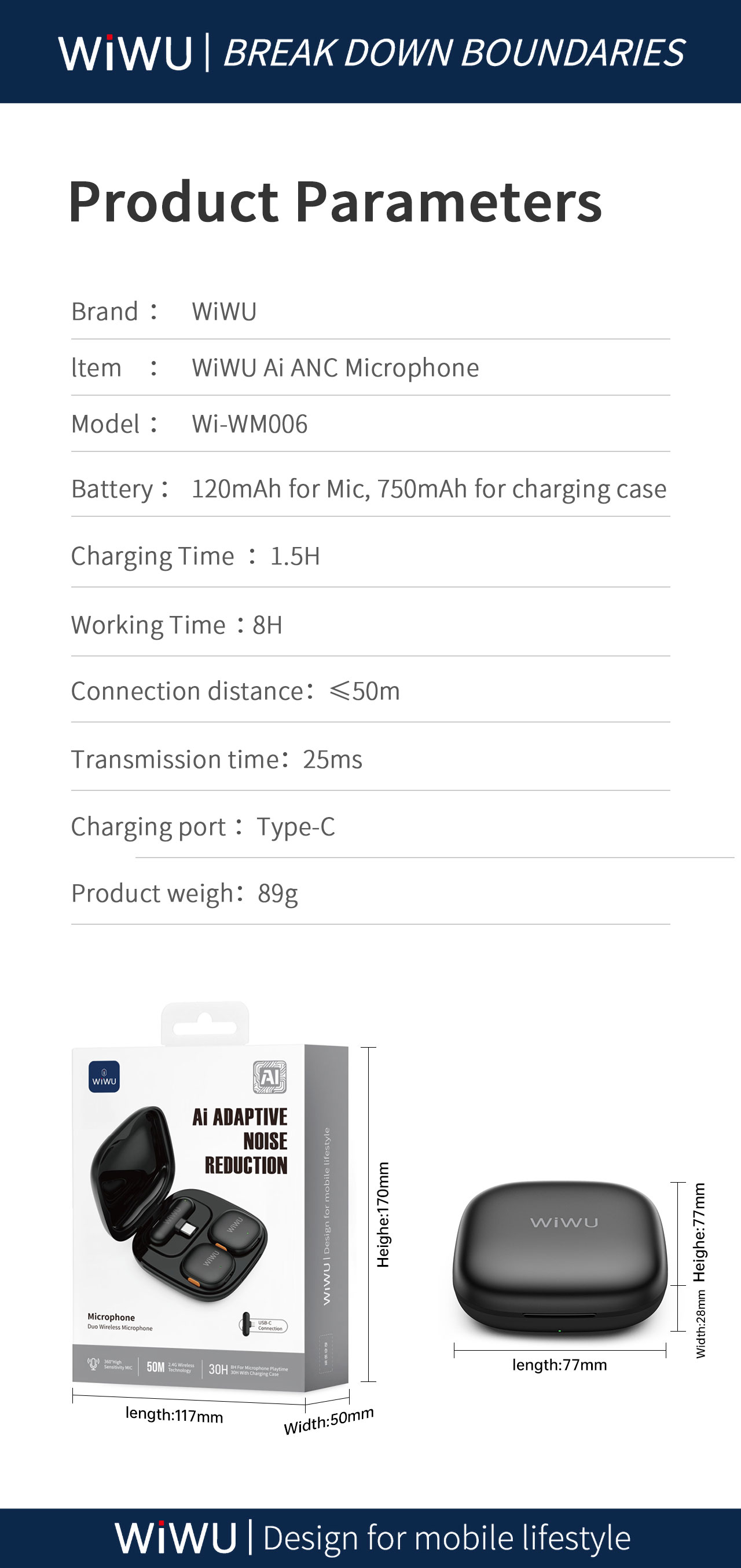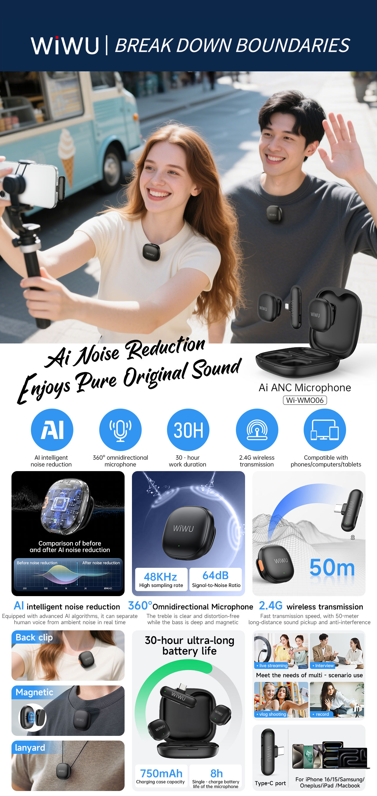- WIWU Wi-WM006 Duo Wireless Microphone AI Adaptive Noise Reduction - Black WIWU Wi-WM006 Duo Wireless Microphone AI Adaptive Noise Reduction - Black