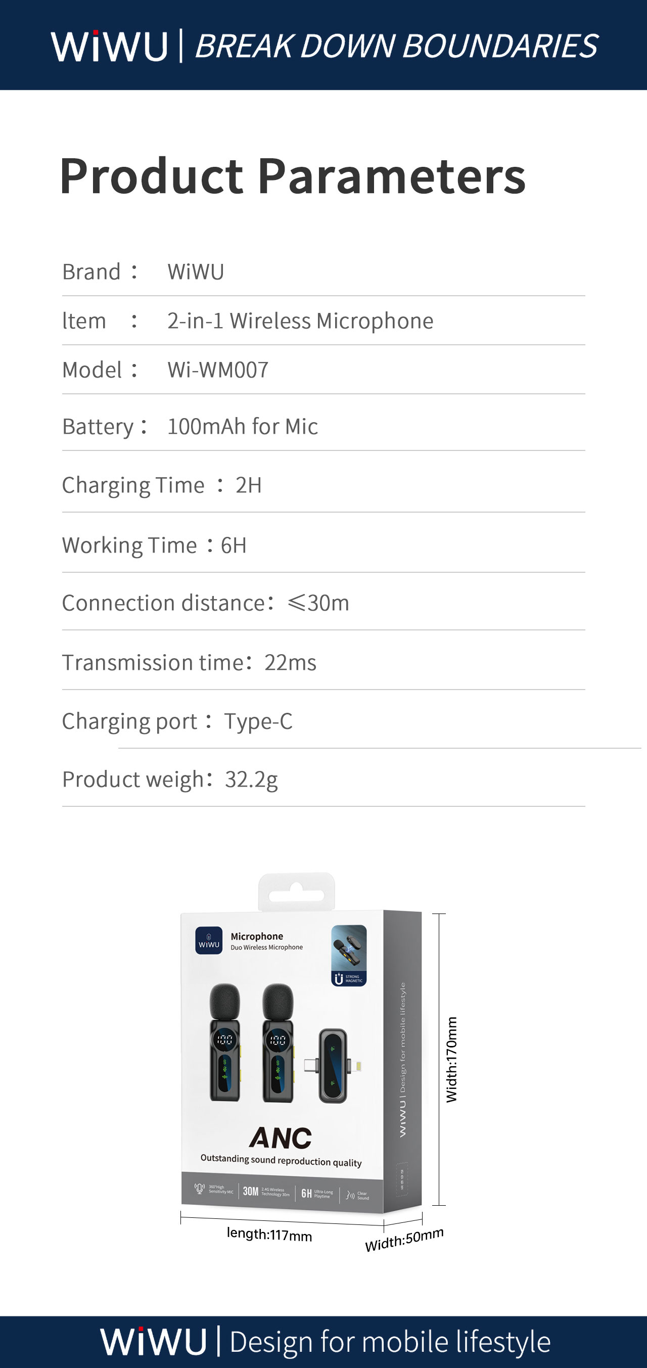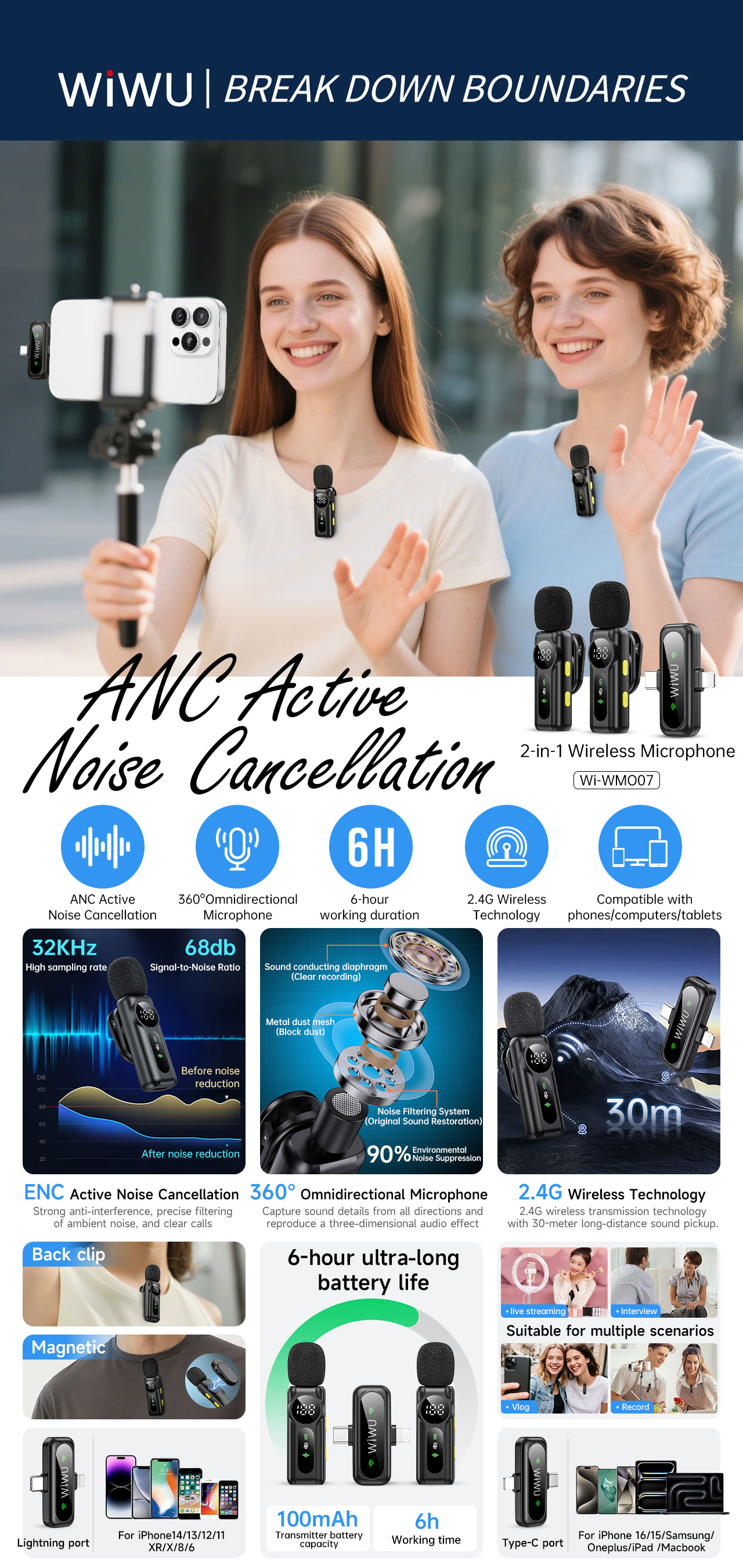 - WIWU Wi-WM007 2in1 Wireless Lavalier Microphone with ANC and Lightning Port WIWU Wi-WM007 2in1 Wireless Lavalier Microphone with ANC and Lightning Port