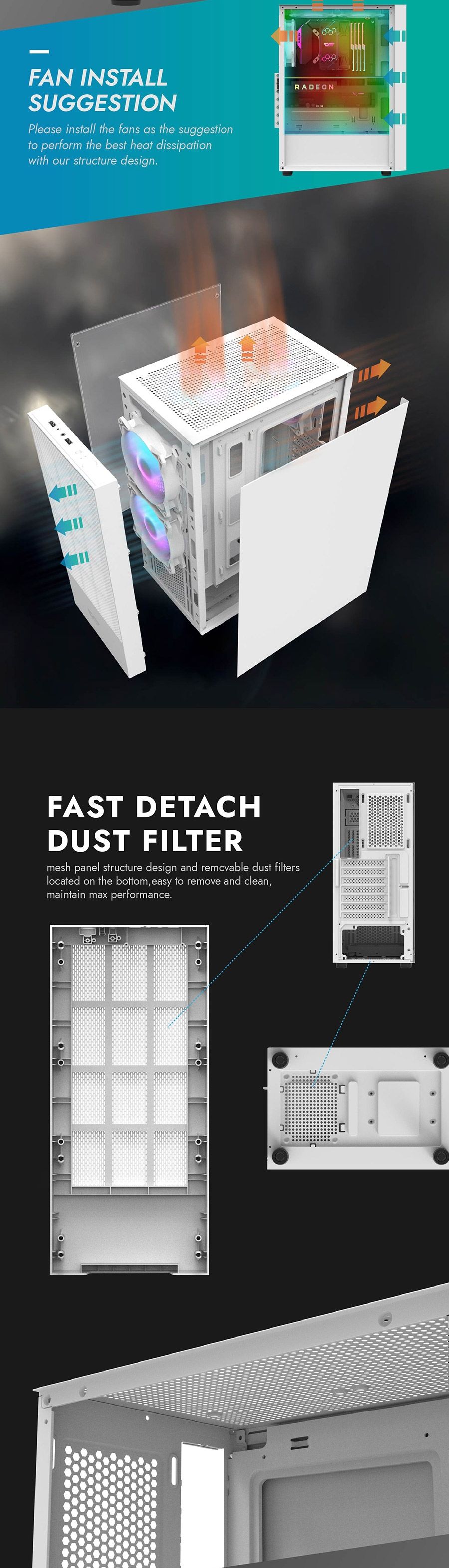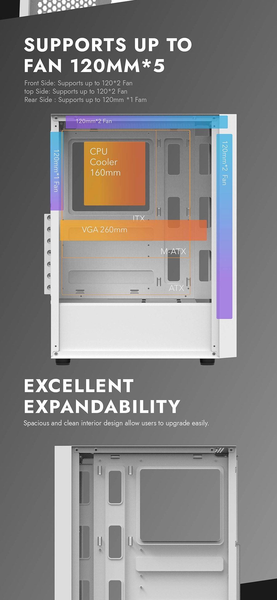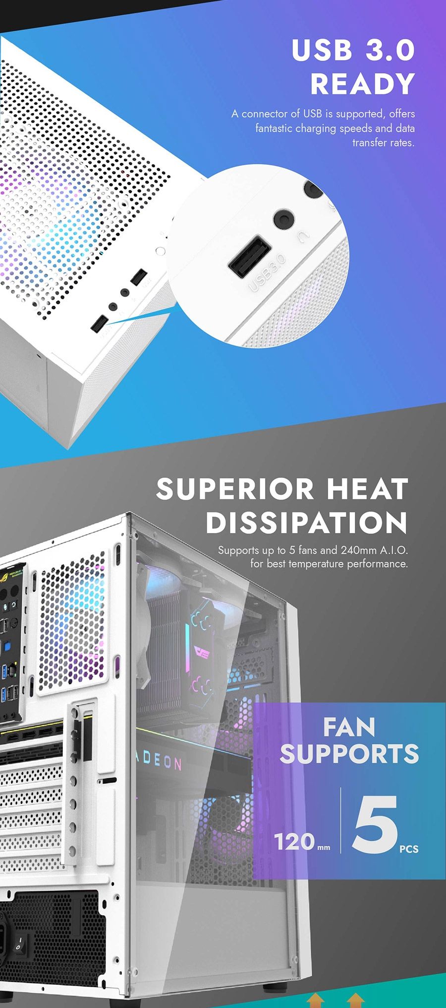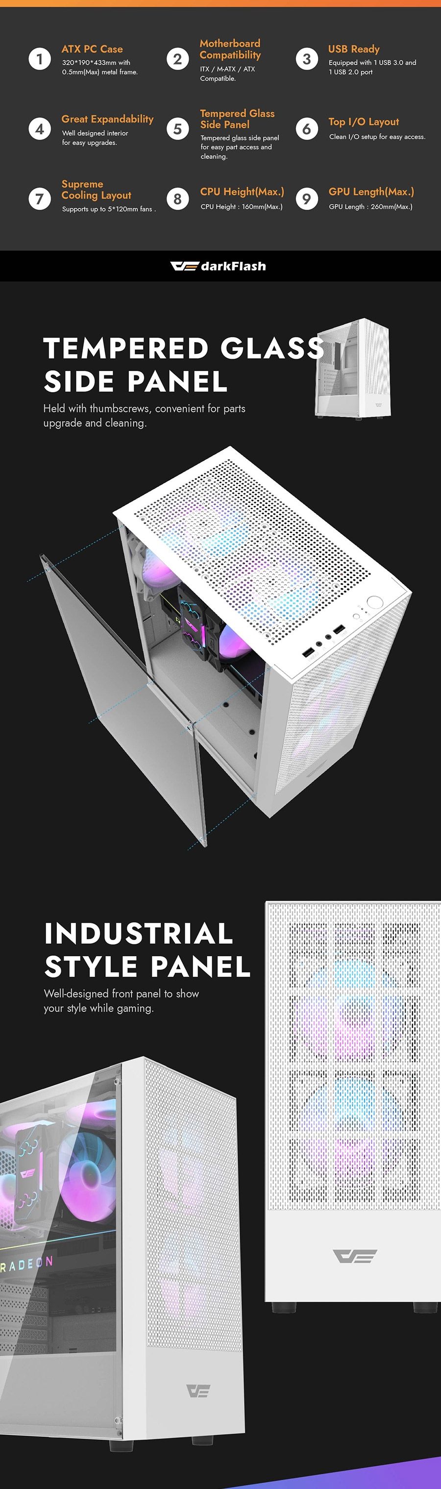 • Darkflash A290 ATX with 3 FANS PC Case - White Darkflash A290 ATX with 3 FANS PC Case - White