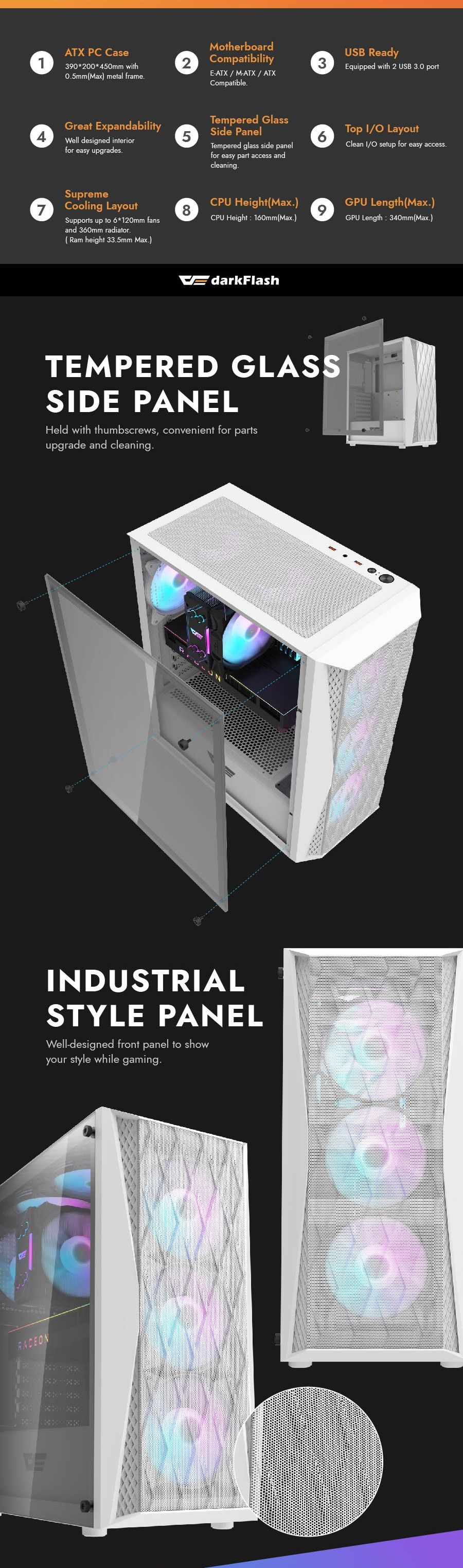 • Darkflash DK352 Mesh ATX Case - White Darkflash DK352 Mesh ATX Case - White