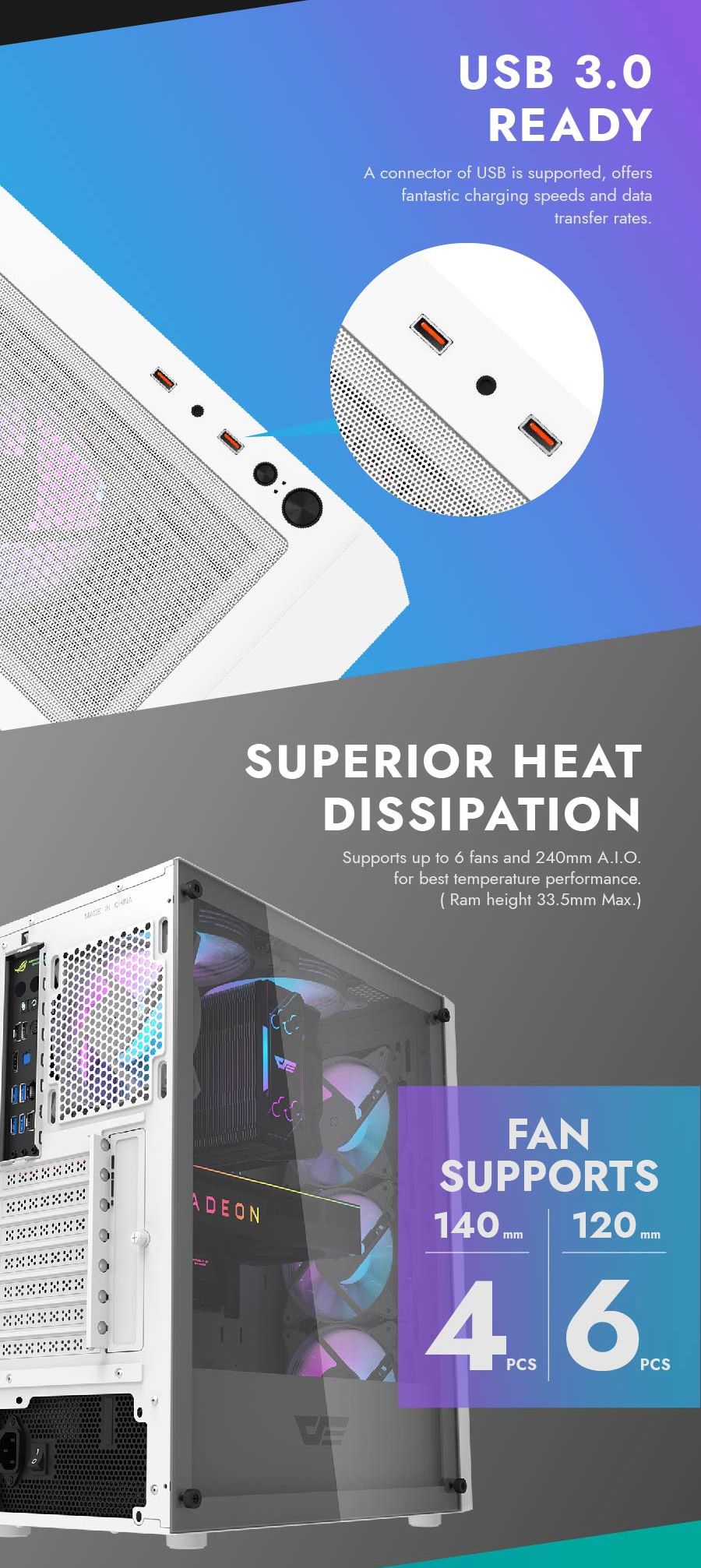 Darkflash DB460M M-ATX with 3 FANS PC Case - White