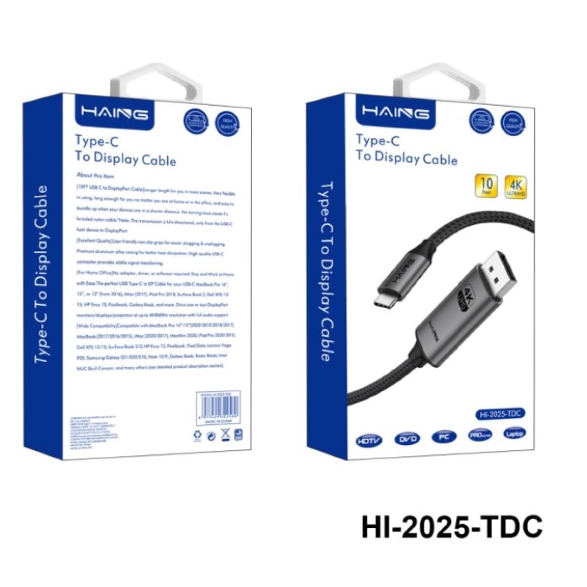 - HAING HI-2025-TDC-3M Type-C to Display Cable 3M HAING HI-2025-TDC-3M Type-C to Display Cable 3M