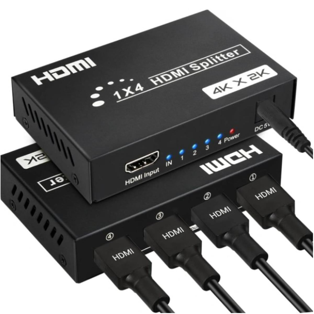 1x4 HDMI Splitter: Distributes one HDMI input signal to four HDMI output devices simultaneously