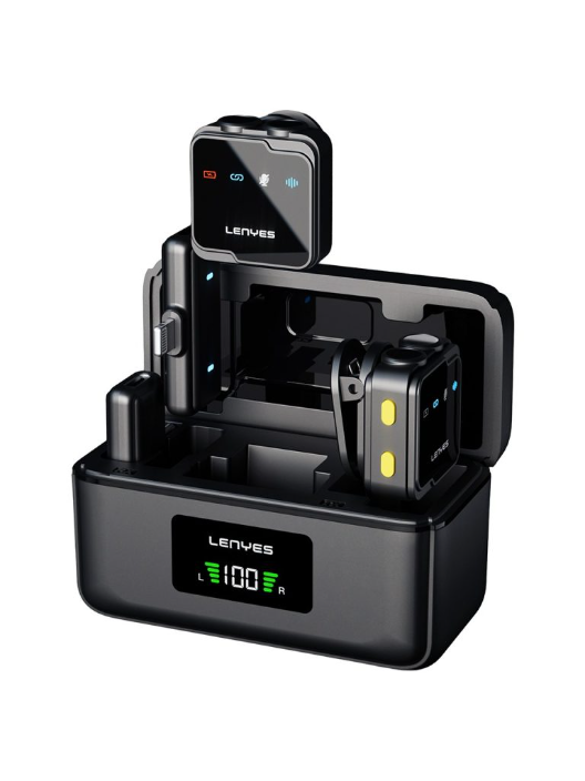 đĽď¸ Overview The LENYES LM205 is a plugâandâplay wireless lavalier microphone that comes with two transmitters and one dualâmode receiver. The receiver has both TypeâC and Lightning connectors, so you can use it across multiple devices without adapters. It features AIâpowered noise cancellation, lowâlatency 2.4 GHz transmission, and is perfect for interviews, podcasts, vlogging, and live streaming.