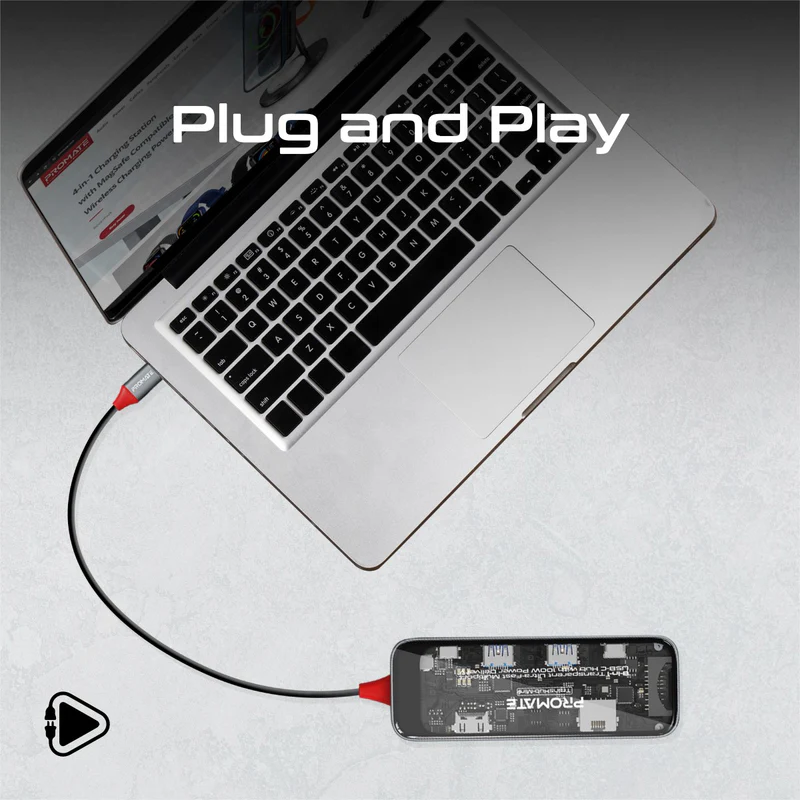 100W Power Delivery: Charges laptops or devices at high speed via a USB-C passthrough port—maintains power even with multiple peripherals connected, ensuring uninterrupted workflows, per promate.net.